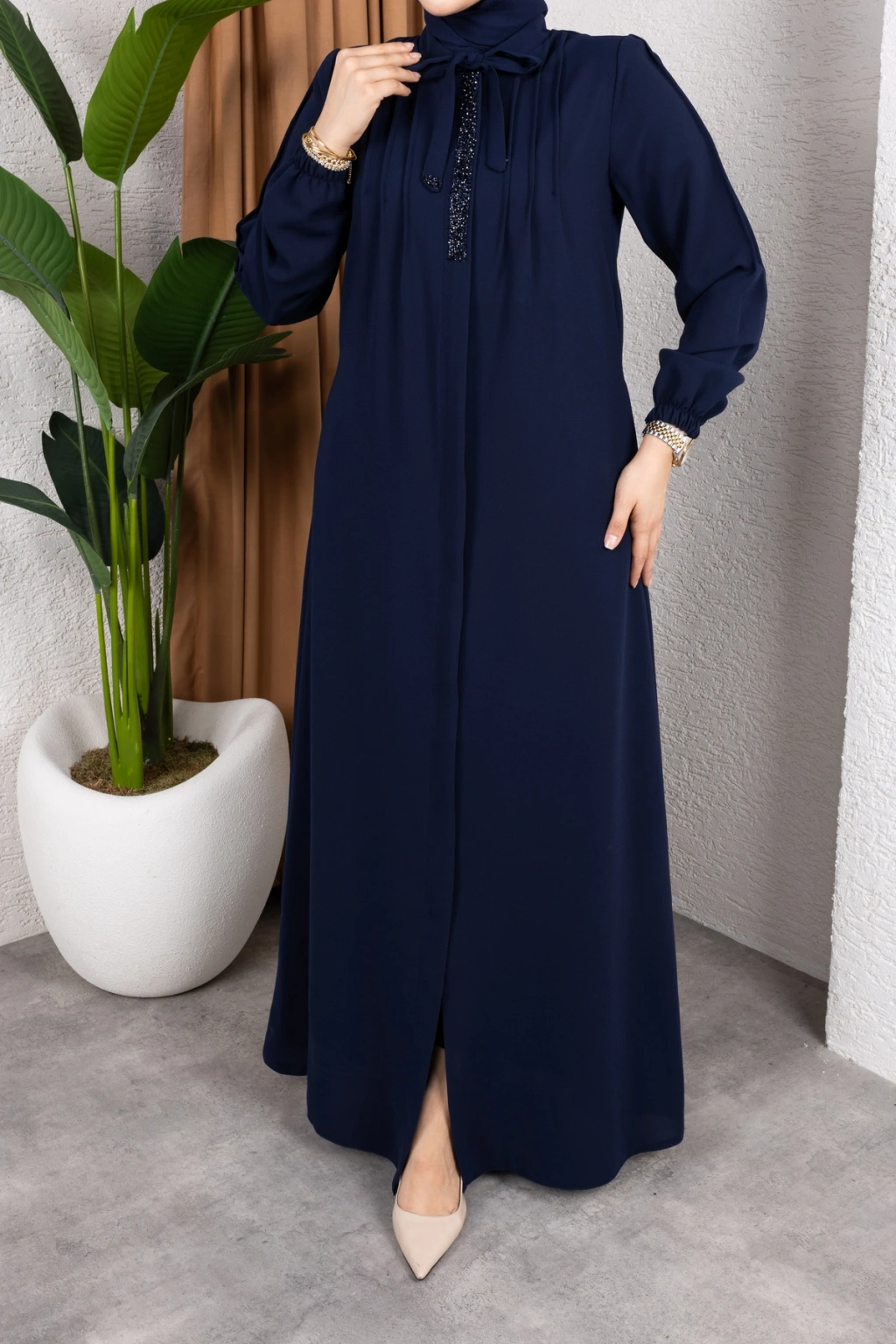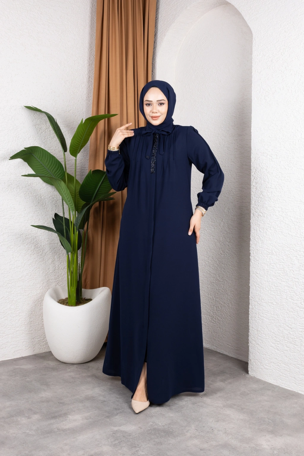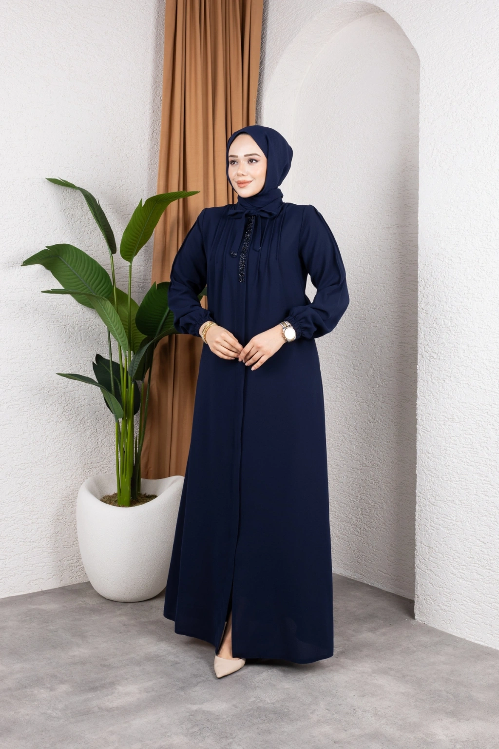 - %100 pamuk ve polyester karışımı kumaştan üretilmiş olup, dayanıklılığı ve konforu bir arada sunar.; - Regular kalıp ile rahat bir kullanım sağlar ve her vücut tipine uyum sağlar.; - A-line silueti sayesinde feminen bir görünüm kazandırırken, hareket özgürlüğü sunar.; - Tesettür giyim koleksiyonuna özel tasarlanmıştır, şık ve modern bir duruş sergiler.; - Full fermuar kapama özelliği ile pratik kullanım imkanı sağlar ve kolayca giyilip çıkartılabilir.; - Tüm sezonlarda tercih edilebilecek şekilde tasarlanmıştır; mevsim geçişlerinde idealdir.; - Business ortamları için uygun olan bu ferace, profesyonel bir görünüm kazandırır.; - Hakim yaka detayı ile zarif bir boyun hattı oluştururken, fermuarlı tasarımı modern bir dokunuş katmaktadır.; - Düz deseniyle sade ve şık bir görünüm sunarken, her tür aksesuarla kolayca kombinlenebilir.; - Krep dokuma tipi sayesinde yumuşak bir dokunuş hissi verirken aynı zamanda dayanıklılık sunar.; - Uzun kol boyu ile kollarınızın tamamını korurken, iç göstermeyen yapısıyla rahatlıkla tercih edilebilir.; - Orta kalınlıkta olan kumaşı mevsim geçişlerinde ideal konfor sağlar.; - Astarsız tasarım hafif