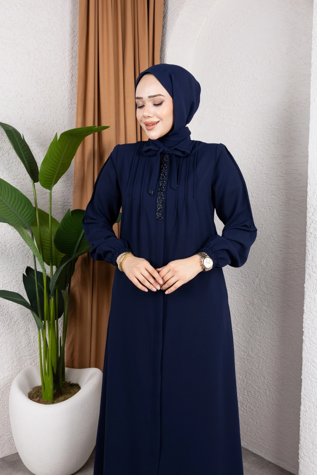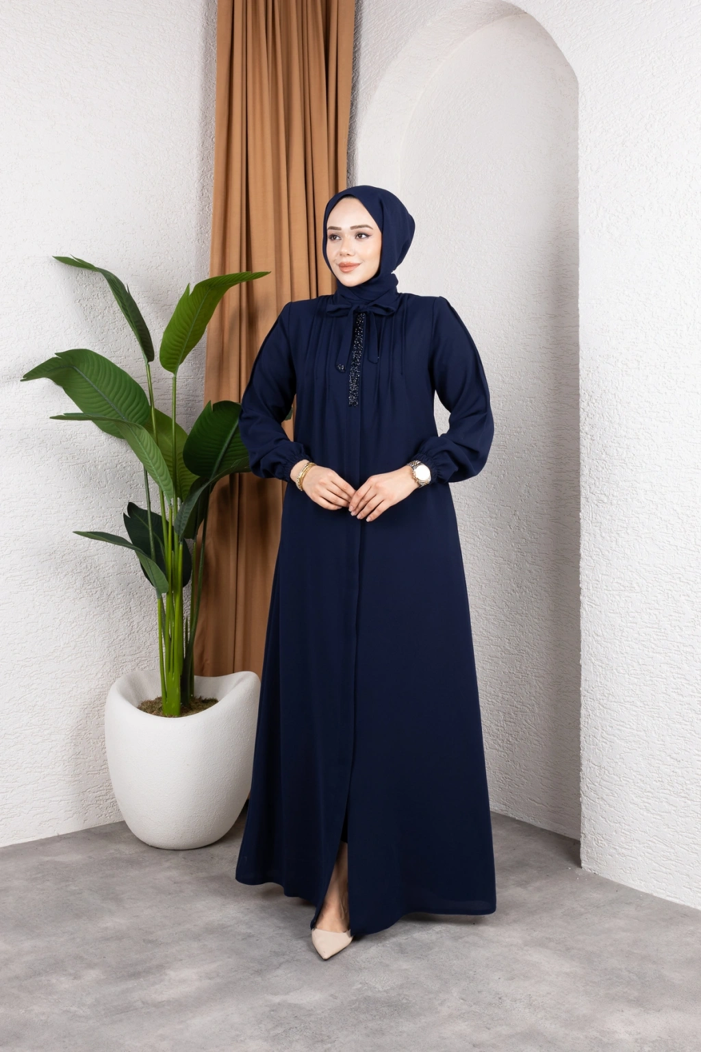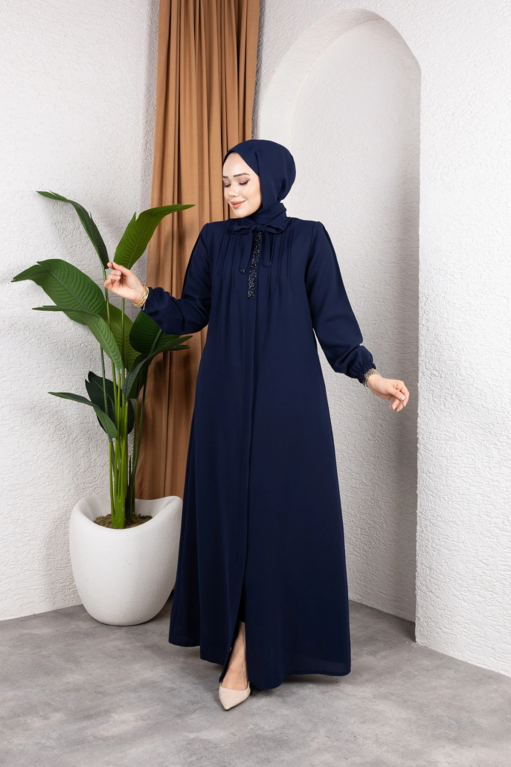 - %100 pamuk ve polyester karışımı kumaştan üretilmiş olup, dayanıklılığı ve konforu bir arada sunar.; - Regular kalıp ile rahat bir kullanım sağlar ve her vücut tipine uyum sağlar.; - A-line silueti sayesinde feminen bir görünüm kazandırırken, hareket özgürlüğü sunar.; - Tesettür giyim koleksiyonuna özel tasarlanmıştır, şık ve modern bir duruş sergiler.; - Full fermuar kapama özelliği ile pratik kullanım imkanı sağlar ve kolayca giyilip çıkartılabilir.; - Tüm sezonlarda tercih edilebilecek şekilde tasarlanmıştır; mevsim geçişlerinde idealdir.; - Business ortamları için uygun olan bu ferace, profesyonel bir görünüm kazandırır.; - Hakim yaka detayı ile zarif bir boyun hattı oluştururken, fermuarlı tasarımı modern bir dokunuş katmaktadır.; - Düz deseniyle sade ve şık bir görünüm sunarken, her tür aksesuarla kolayca kombinlenebilir.; - Krep dokuma tipi sayesinde yumuşak bir dokunuş hissi verirken aynı zamanda dayanıklılık sunar.; - Uzun kol boyu ile kollarınızın tamamını korurken, iç göstermeyen yapısıyla rahatlıkla tercih edilebilir.; - Orta kalınlıkta olan kumaşı mevsim geçişlerinde ideal konfor sağlar.; - Astarsız tasarım hafif