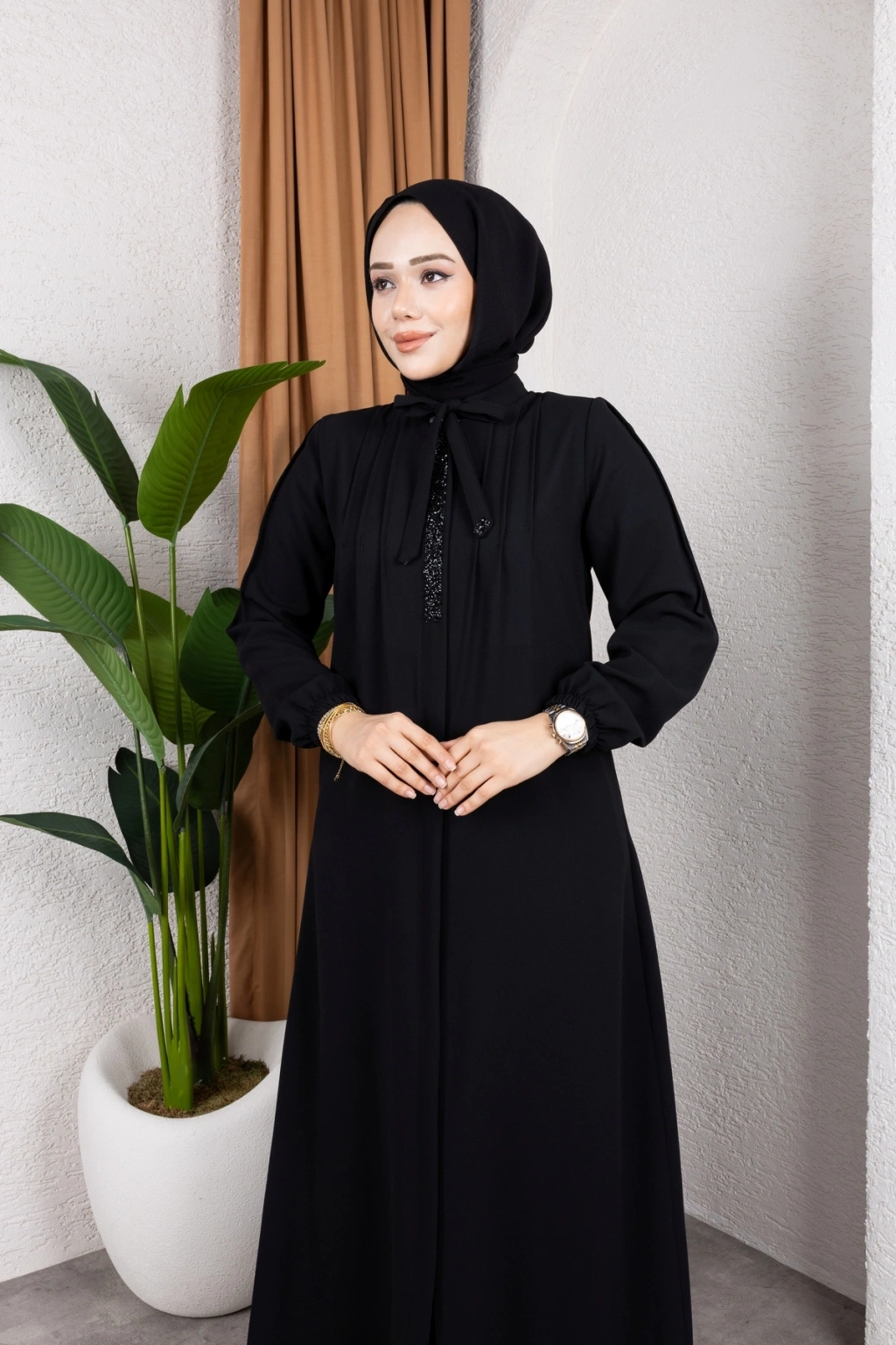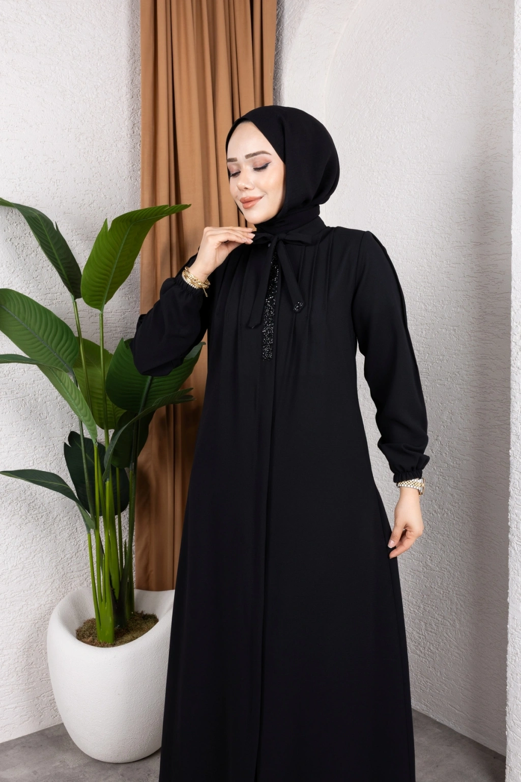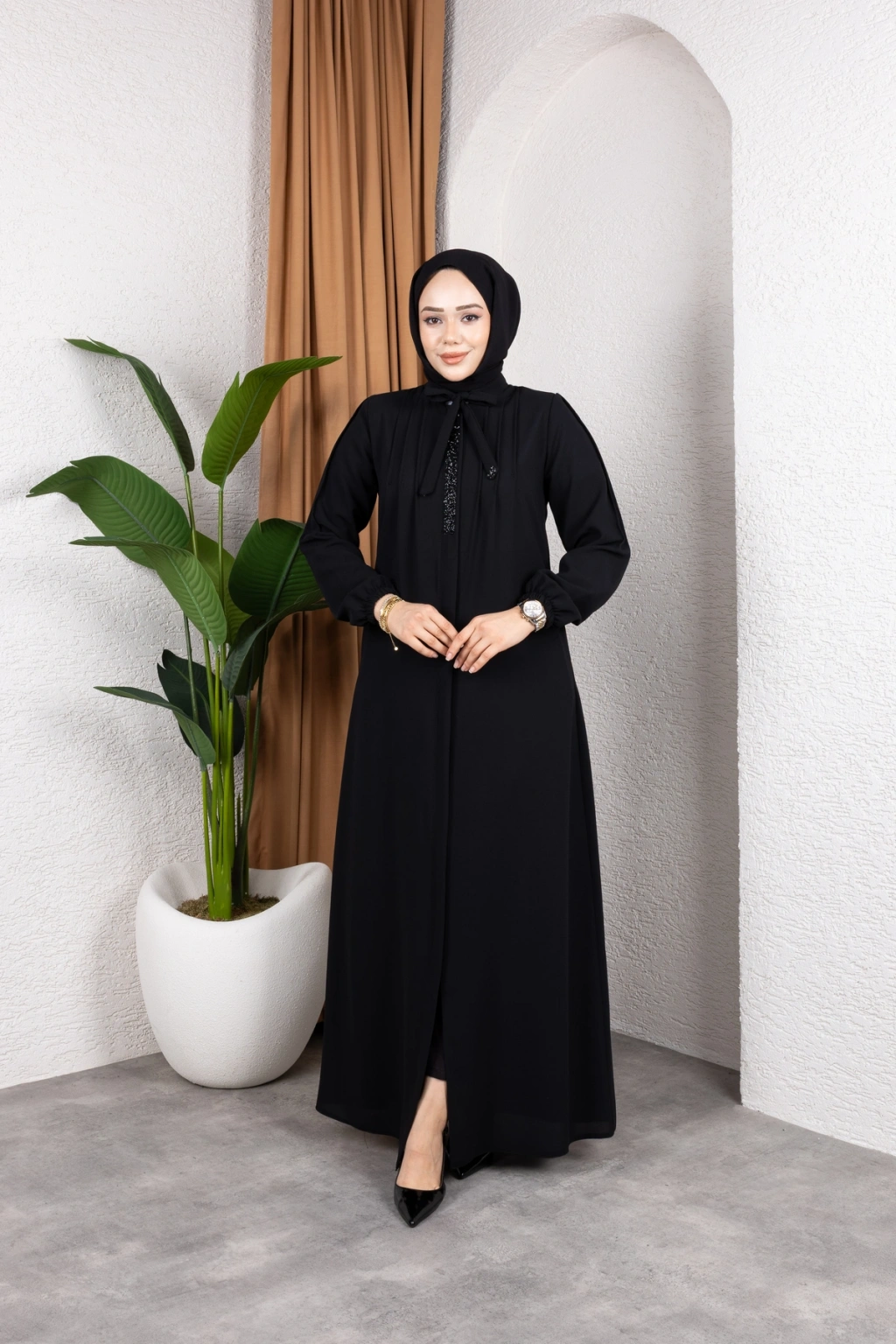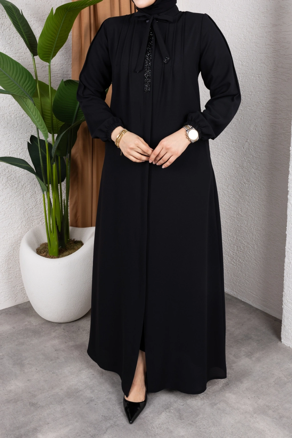 - %100 pamuk ve polyester karışımı kumaştan üretilmiş olup, dayanıklılığı ve konforu bir arada sunar.; - Regular kalıp ile rahat bir kullanım sağlar ve her vücut tipine uyum sağlar.; - A-line silueti sayesinde feminen bir görünüm kazandırırken, hareket özgürlüğü sunar.; - Tesettür giyim koleksiyonuna özel tasarlanmıştır, şık ve modern bir duruş sergiler.; - Full fermuar kapama özelliği ile pratik kullanım imkanı sağlar ve kolayca giyilip çıkartılabilir.; - Tüm sezonlarda tercih edilebilecek şekilde tasarlanmıştır; mevsim geçişlerinde idealdir.; - Business ortamları için uygun olan bu ferace, profesyonel bir görünüm kazandırır.; - Hakim yaka detayı ile zarif bir boyun hattı oluştururken, fermuarlı tasarımı modern bir dokunuş katmaktadır.; - Düz deseniyle sade ve şık bir görünüm sunarken, her tür aksesuarla kolayca kombinlenebilir.; - Krep dokuma tipi sayesinde yumuşak bir dokunuş hissi verirken aynı zamanda dayanıklılık sunar.; - Uzun kol boyu ile kollarınızın tamamını korurken, iç göstermeyen yapısıyla rahatlıkla tercih edilebilir.; - Orta kalınlıkta olan kumaşı mevsim geçişlerinde ideal konfor sağlar.; - Astarsız tasarım hafif