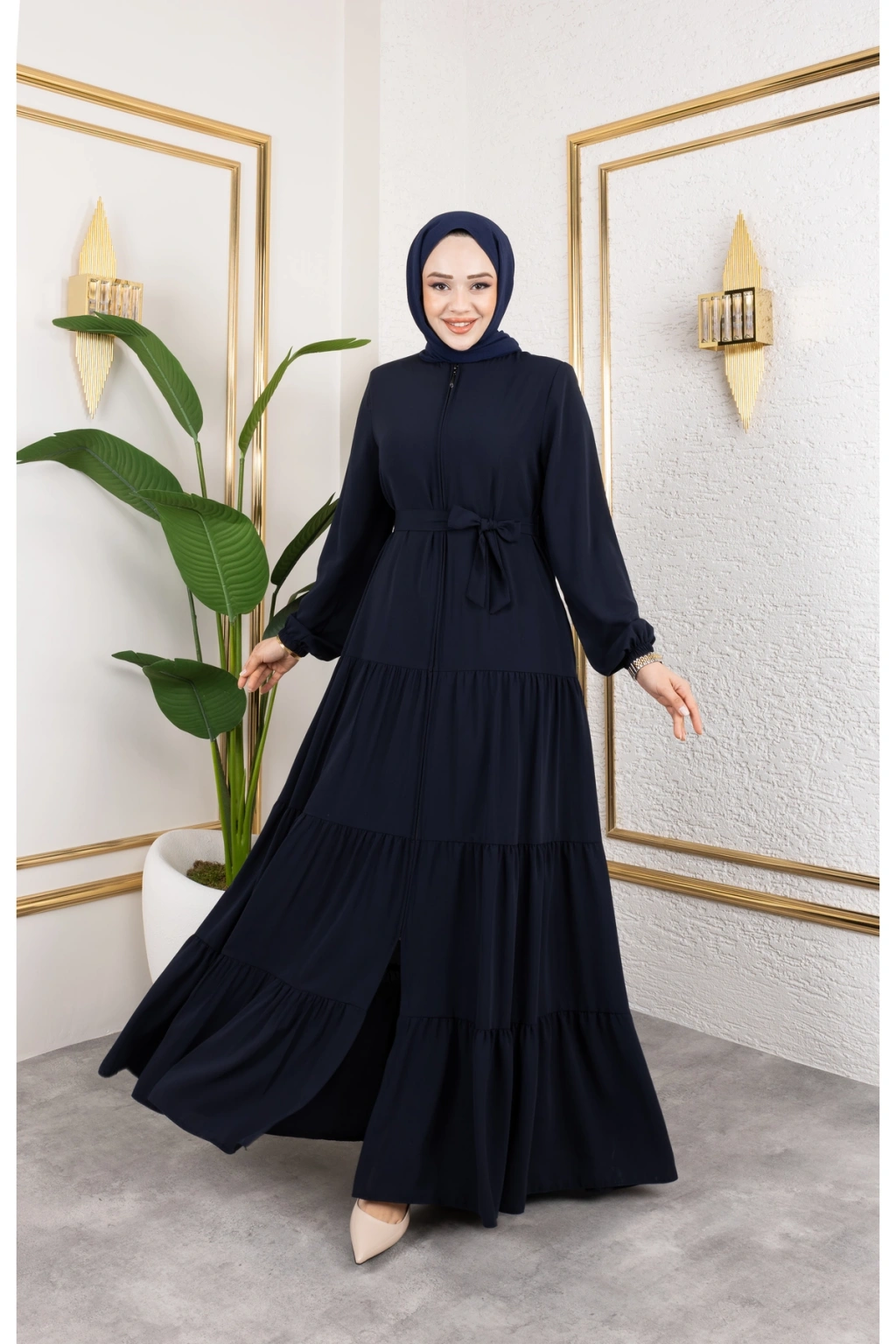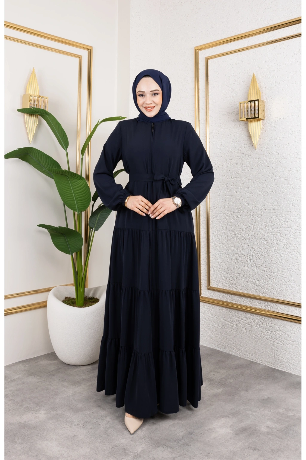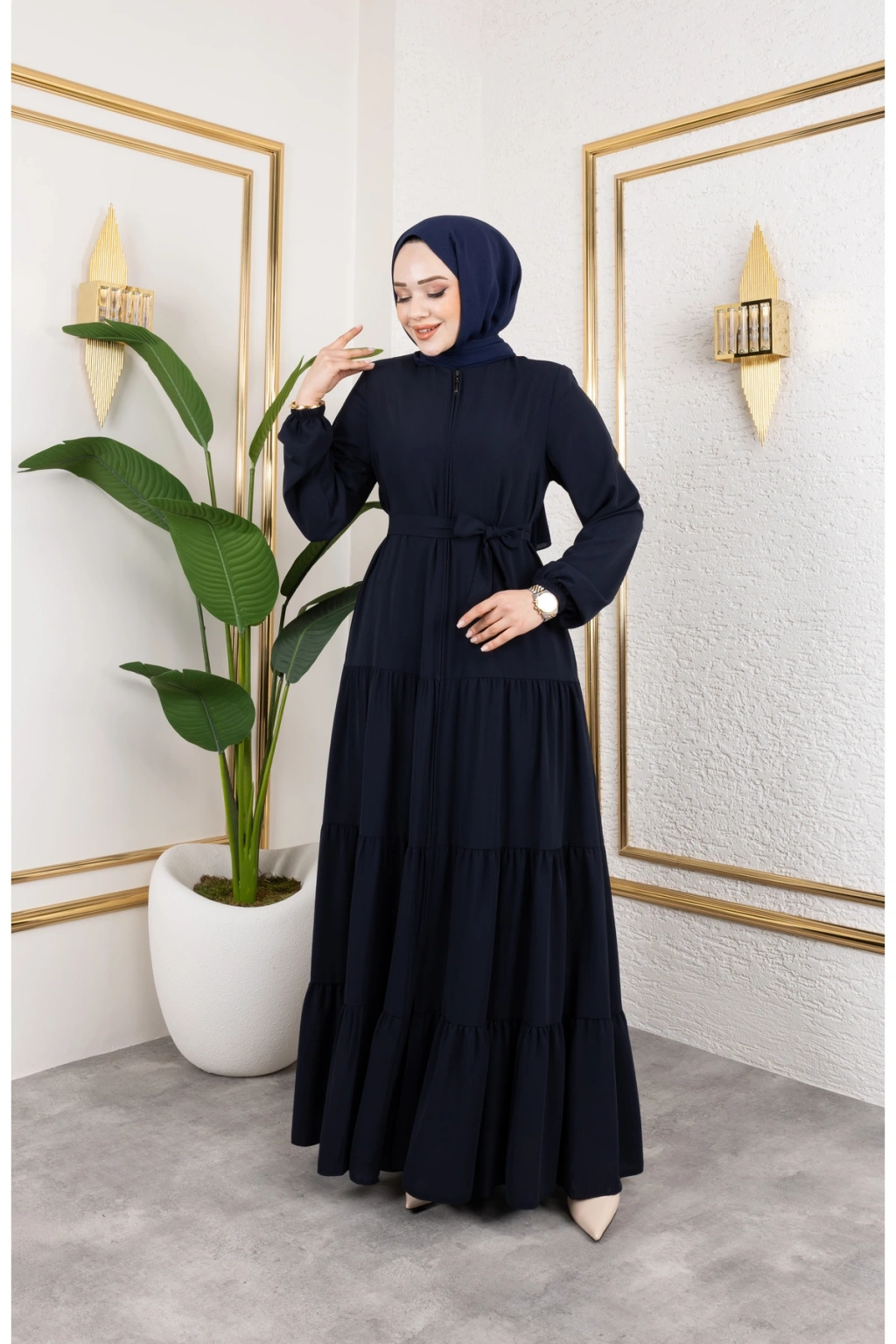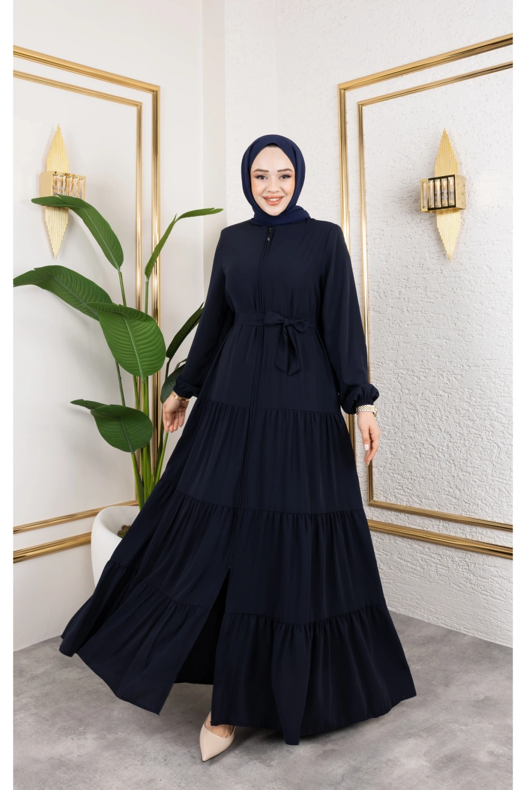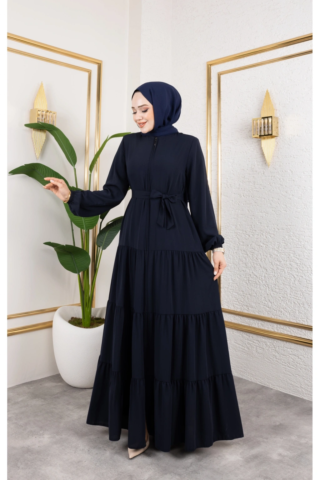 Ürünümüzün kumaşı medine ipeğidir dökümlüdür Önden gizli fermuarlıdır.; 3 Kat büzgü detaylıdır Ürün b oyu 145 cm'dir.; Fermuar boyu:100cm'dir Ürünümüzü daha uzun kullanabilmeniz için sürtünmelerden, zincirli ve taşlı aksesuarlardan koruyunuz.