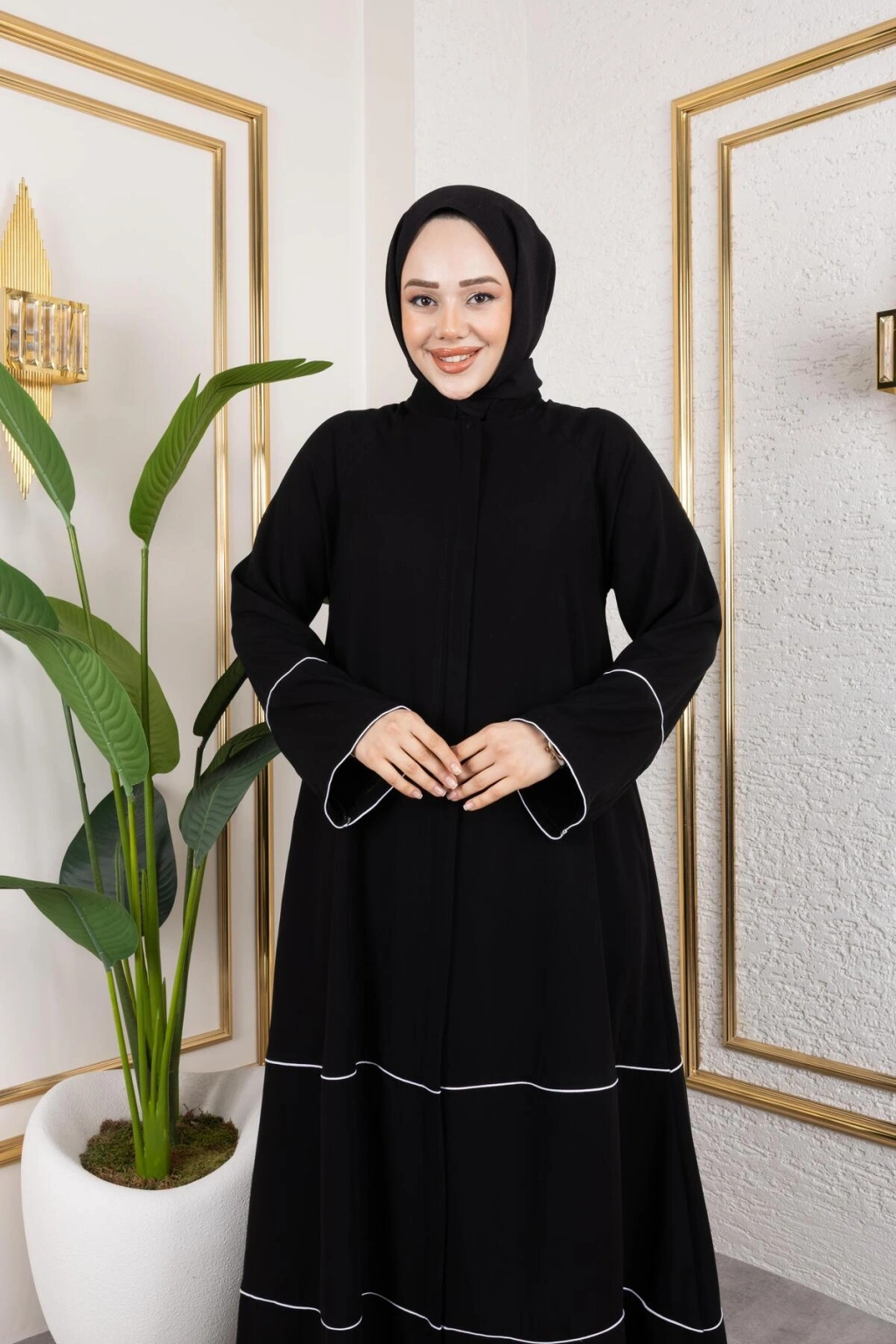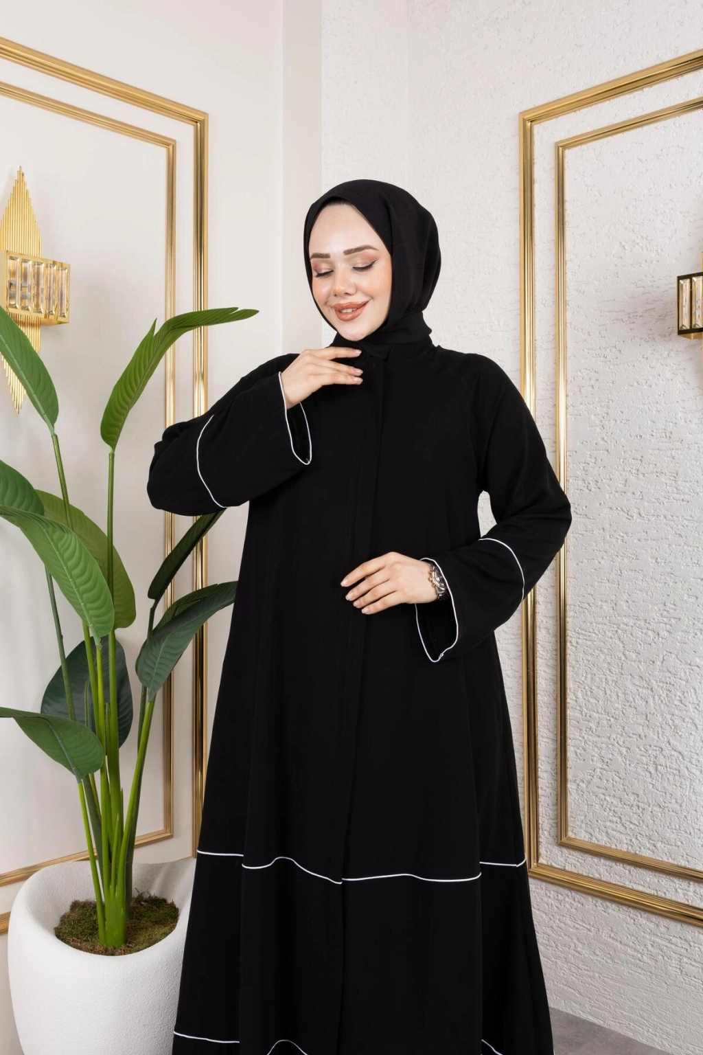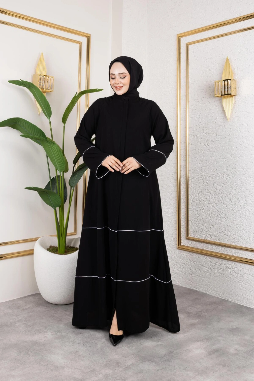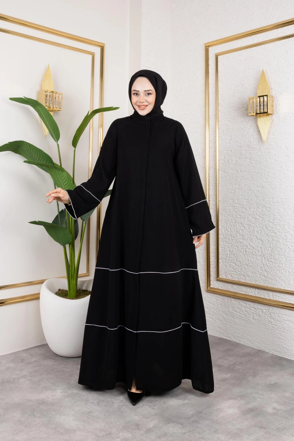 Ürünümüzün kumaşı medine ipeğidir dökümlüdür ; Önden gizli fermuarlıdır.; ; 2 Kat biye detaylıdır ; Ürün b oyu 145 cm'dir.; ; Fermuar boyu:100cm'dir ; Ürünümüzü daha uzun kullanabilmeniz için sürtünmelerden, zincirli ve taşlı aksesuarlardan koruyunuz.
