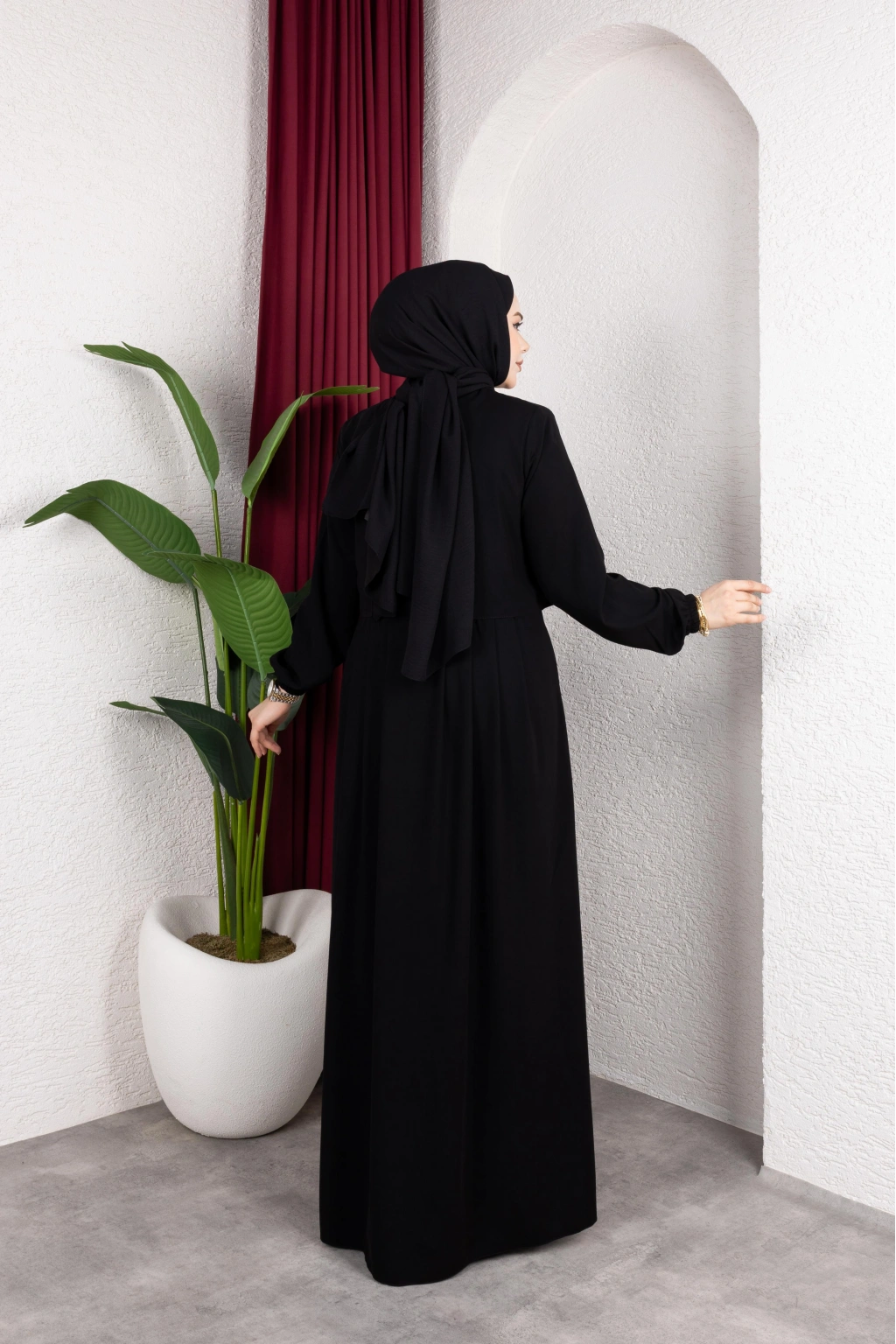 - Medine ipeği kumaştan üretilmiş, hafif ve nefes alabilen yapısıyla gün boyu konfor sağlar.