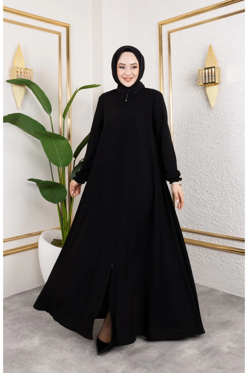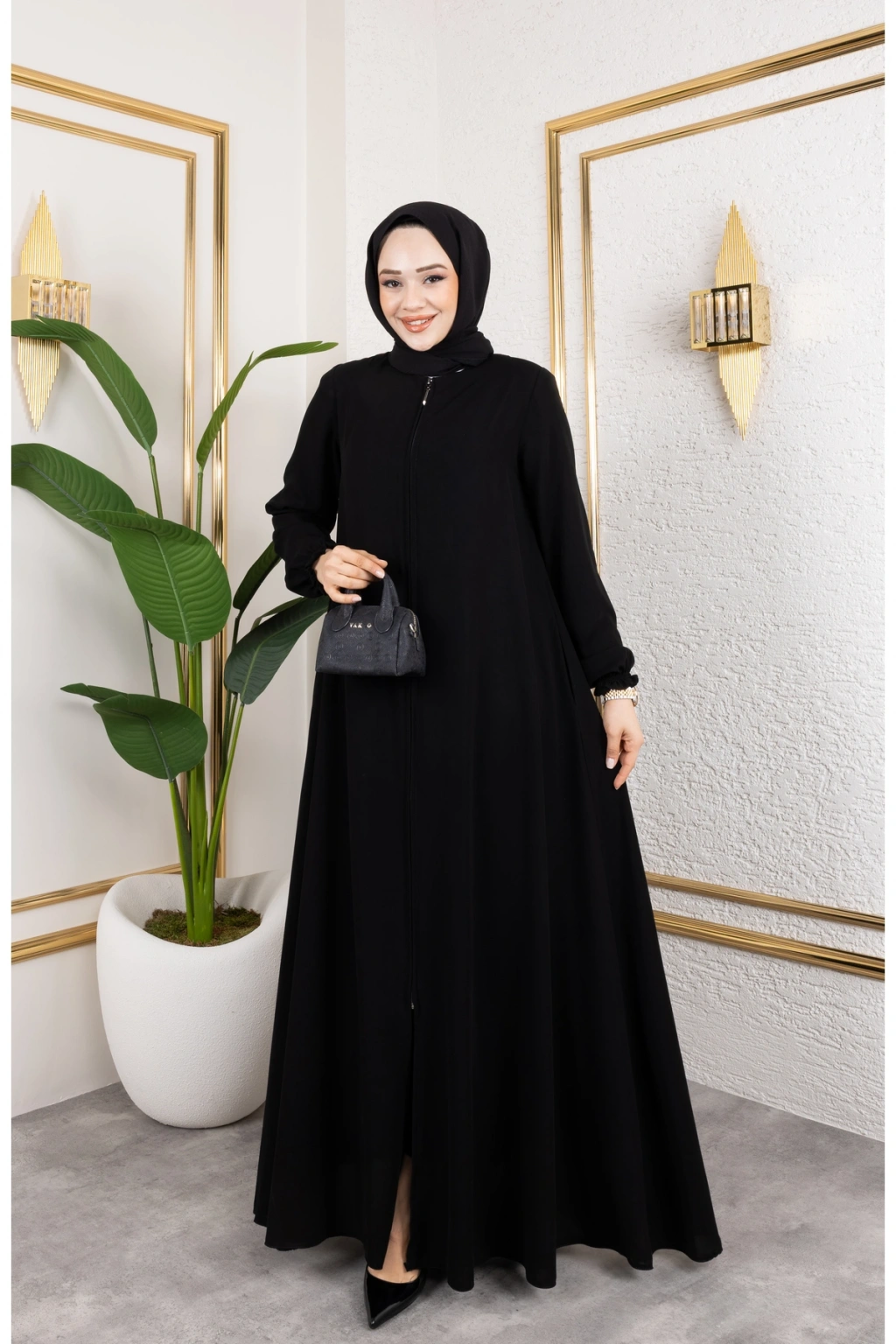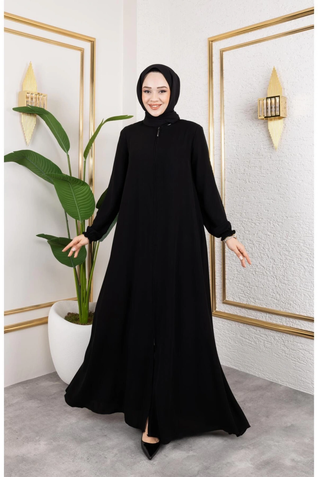 Ürünümüzün kumaşı medine ipeğidir dökümlüdür ; Önden gizli fermuarlıdır.; ; 56 bedene kadar beden seçeneği mevcuttur.; ; Ürün b oyu 145 cm'dir.; ; Fermuar boyu:100cm'dir ; Ürünümüzü daha uzun kullanabilmeniz için sürtünmelerden, zincirli ve taşlı aksesuarlardan koruyunuz.