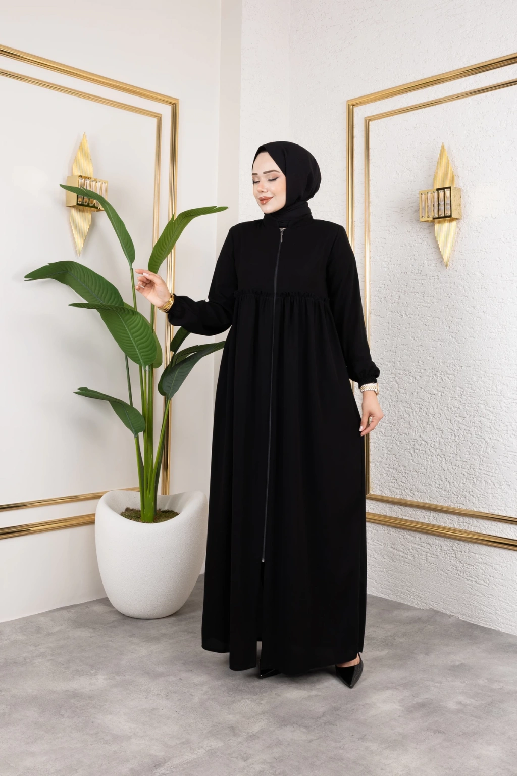 Medine İpeği 3 Kat Büzgülü Feracce