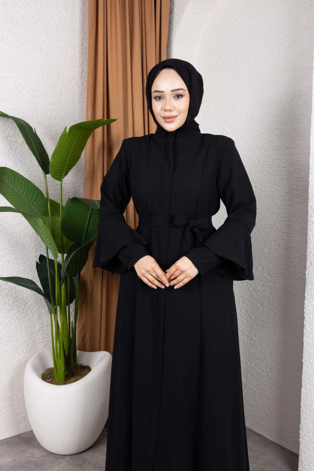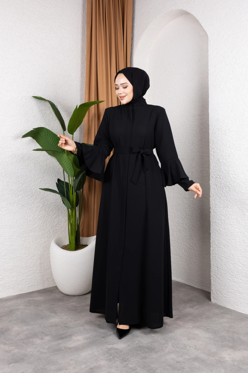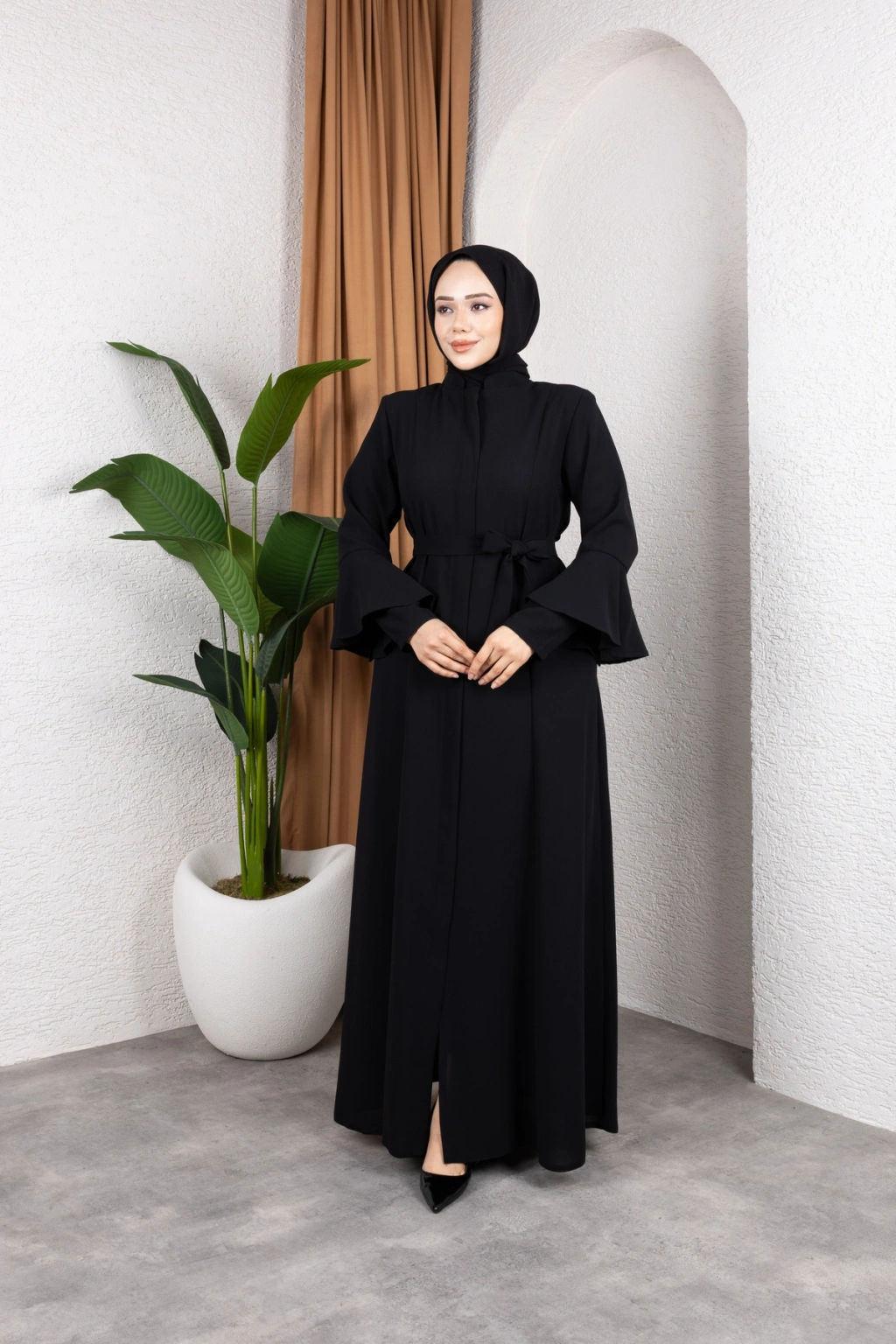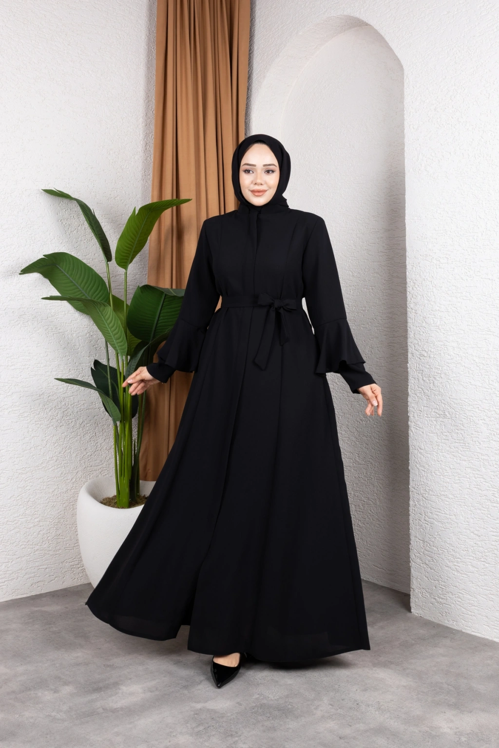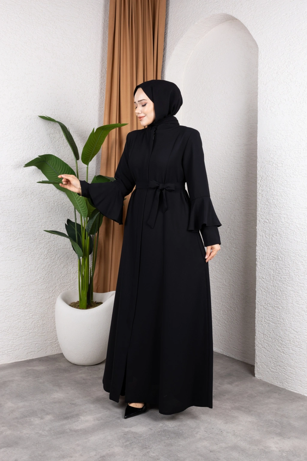 - Volanlı kol tasarımı ile modern ve şık bir görünüm sunar.; - Tüm mevsimlerde rahatlıkla tercih edilebilecek orta kalınlıkta kumaştan üretilmiştir.; - İç göstermeyen yapısı sayesinde rahat bir kullanım sağlar.; - Regular kalıp ile vücut hatlarınıza uyum sağlar ve konforlu bir oturuş sunar.; - Fermuarlı tasarımı kolay giyilip çıkartılabilirlik açısından pratiklik kazandırır.; - A-line silueti ile feminen ve zarif bir duruş sergiler.; - Düz deseniyle sade ve zamansız bir stil oluşturur.; - Tesettür giyim koleksiyonuna uygun olarak tasarlanmıştır, modayı takip eden kadınlar için idealdir.; - Pamuk polyester karışımı materyali dayanıklılık ve konforu bir arada sunar.; - Astarsız yapısıyla hafif ve nefes alabilen bir yapıya sahiptir.; - Hakim yaka tipi ile sofistike bir görünüm kazandırır.; - Krep dokuma tipi, ürünün şık ve kaliteli durmasını sağlar.; - Full fermuar kapama özelliği sayesinde kolayca giyilip çıkartılabilir.; - Uzun kol boyu soğuk havalarda ekstra koruma sunarken iş ortamına uygunluk sağlar.; - Kuşak detayı bel bölgesini vurgulayarak vücut hatlarını belirginleştirir.; - Yetişkin yaş grubuna hitap eden tasarım detayları ile her yaştan kadının gardrobunda yerini alabilir.; - Türkiye menşeli olmasıyla yerel üretimi desteklerken kaliteyi ön plana çıkarır.